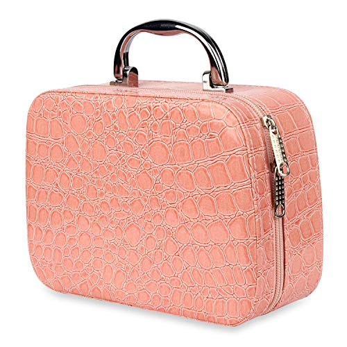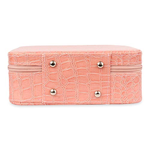 NFI essentials Makeup Box Cosmetic Box Trousseau Box Jewellery Box Toiletry Bag Vanity Box Organizer with Magnifying Compact Makeup Mirror (Pink)