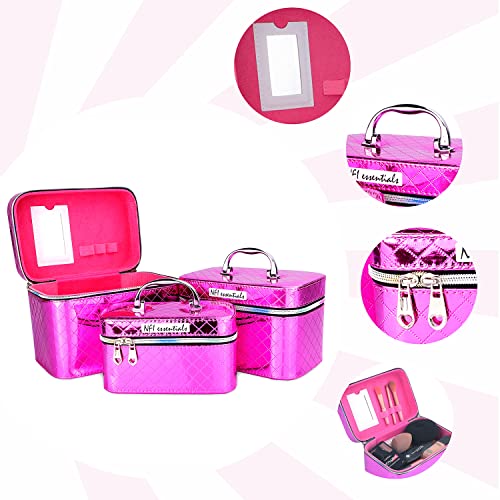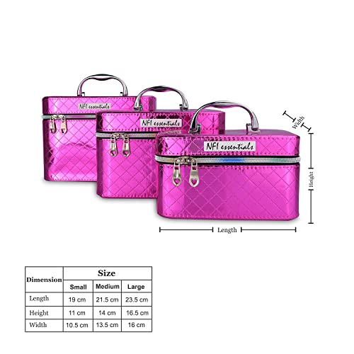NFI essentials Makeup Box Set of 3 Cosmetic Box Jewellery Bridal Box Trousseau Box Vanity Beauty Case Organizer for Wedding Makeup Bag for Bride (New Pink)