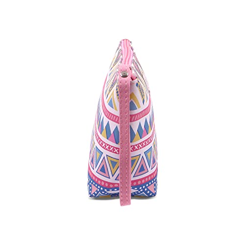 NFI essentials PU Geometric Print Makeup Pouches for Women Stylish Pouch for Makeup Accessories Travel Pouch Cosmetic Pouches Toiletry Bag for Women Make up Pouch for Girls (Light Pink)