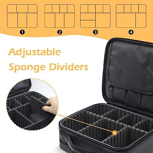 NFI essentials PU Makeup Box Cosmetic Makeup Kit Professional Storage Organizer Travel Toiletry Vanity Make Up Bag Beauty Case for Travel with Adjustable Compartment (Y146-Black)