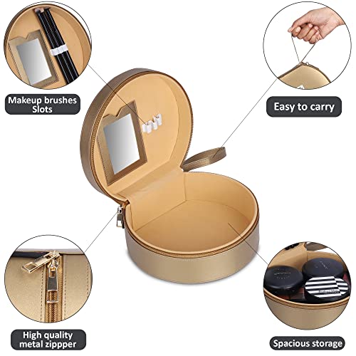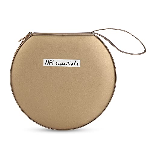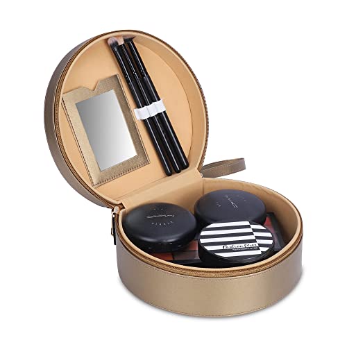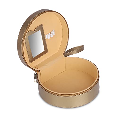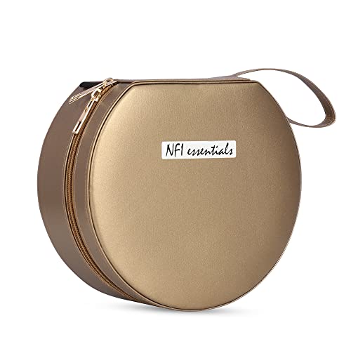 NFI essentials PU Women’s Makeup Bag, Cosmetic Box, Vanity Case, Trousseau Box, Bridal Make Up Organiser with Magnifying Compact Makeup Mirror (Gold)