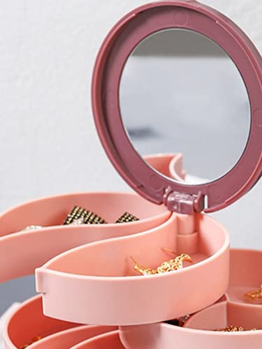 NGEL 4 Layer Rotating Jewellery Box with Mirror/Portable Jewellery Storage Case/Earring, Ring, Bracelet Holder for Girls and Women(Multicolor)