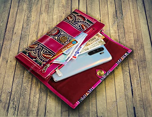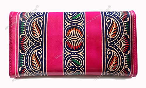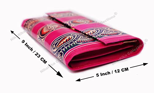 Niharika Collections Shantiniketan Pure Leather Batik Kalka Painted Women’s Clutch Purse 9 Inch