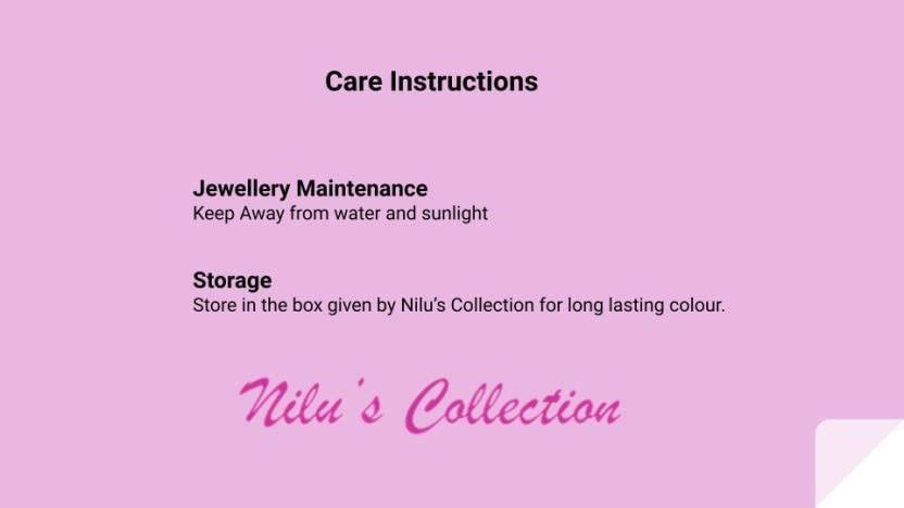 Care Instructions: Wipe your jewellery with the soft cloth after every use, store it in a flat box to avoid accidental scratches. Keep sprays and perfumes away from your jewellery, do not soak it in water.