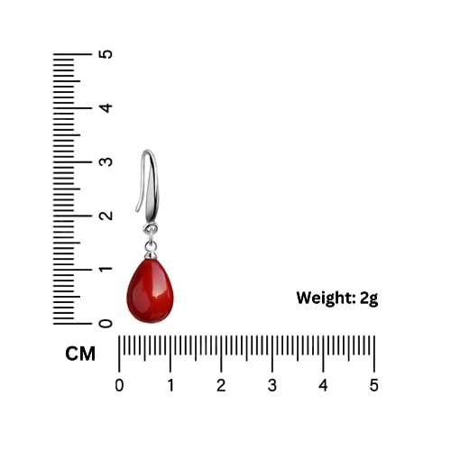 Nilu’s Collection Women’s Pearl Drop Earrings, Silver Plated Round Pearl Dangle and Drop Earrings (Pack of 2, Combo of Red-White drop color)