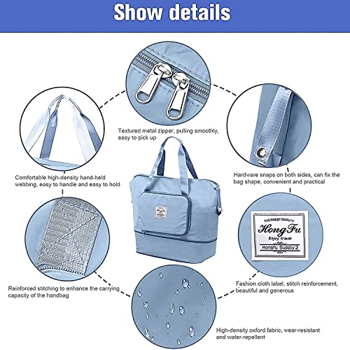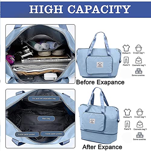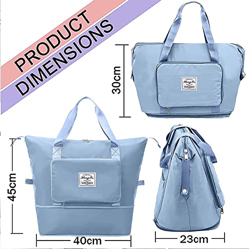NISUN Nylon 40 Cm Foldable Travel Duffel Bag For Women , Expandable Travel Duffle Shoulder Bag Lightweight Waterproof Carry Luggage Bag with Wet Pocket & Shoe Compartment (Blue,40 x 23 X 42 CM)