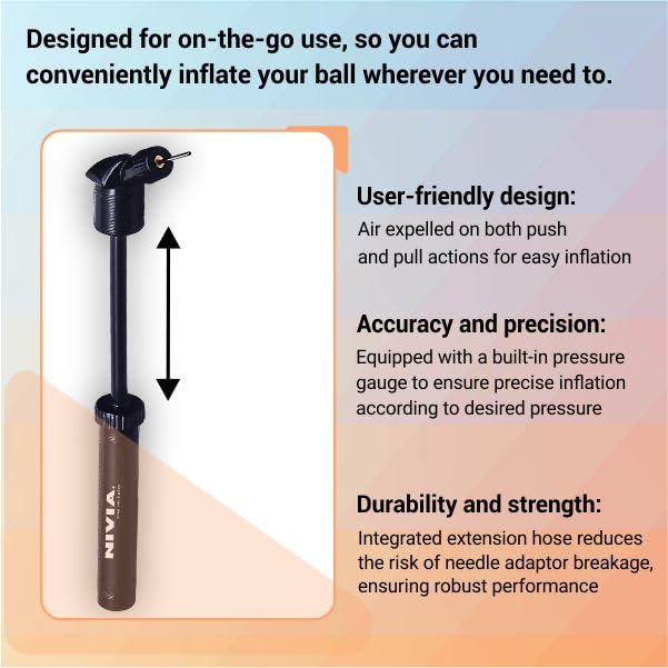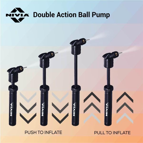 Nivia Double Action Ball Pump-Compact and Portable: Designed for on-the-go use, so you can conveniently inflate your ball wherever you need to.