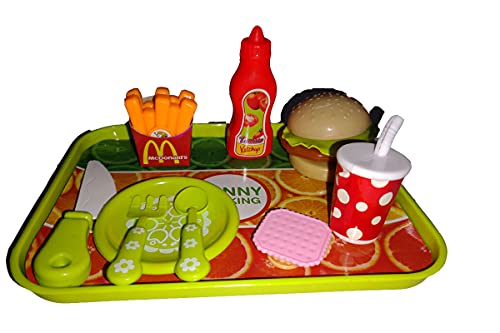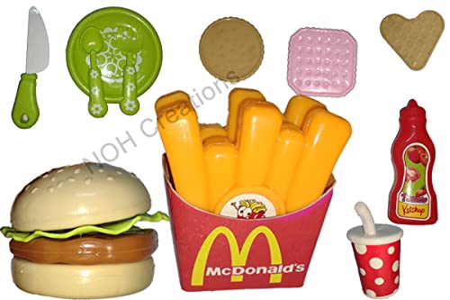 NOH Creations® Pretend Plastic McDonald’s Burger Fries and Ketchup Kitchen Play Set Fast Food Set, Party Play, Best Gifts Food playset for Boys Girls Kids (18 Pieces, Multicolour)