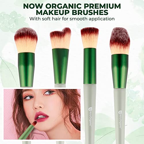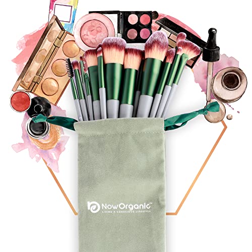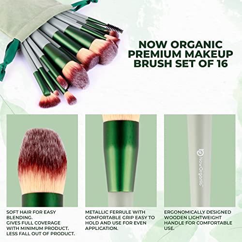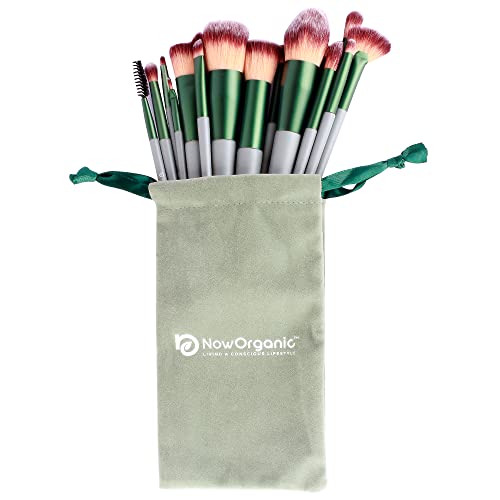 Now Organic Premium Makeup brush set of 15 with free beauty blender for beginners and professionals, easy blending brushes for complete and precise makeup, brushes for foundation,concealer,contour,highlighter,blush,eye shadow,eye liner (With Velvet Pouch)