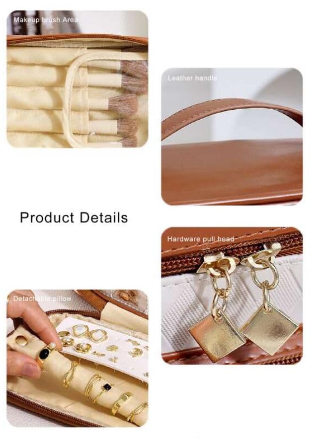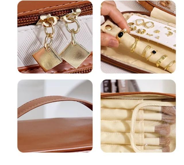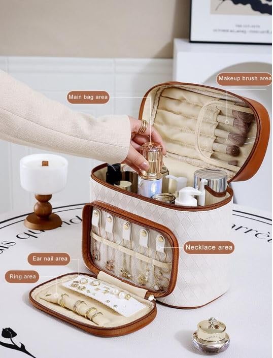 👝【Versatile cosmetics storage case】: decorated with brush slots, can keep everything organized, provide ample space to fit in each kinds of cosmetics makeup essentials like makeup brush, such as lipstick, lip gloss, makeup brushes, eye shadow Airbrush, hairbrushes, eye shadow, lipstick, skincare products, oil essentials, shampoo, creams, nail art products, jewelry, toiletry, travel accessories or men’s shaving kit.