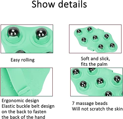 Oicia Hand Roller Massager Glove With Balls,Massage Glove With 7X 360-Degree Rollers,Portable Rollerball Massage Glove Muscle Relax Slimming Magnetic Beads Full Body Massage Tool (Green,1 Pcs)