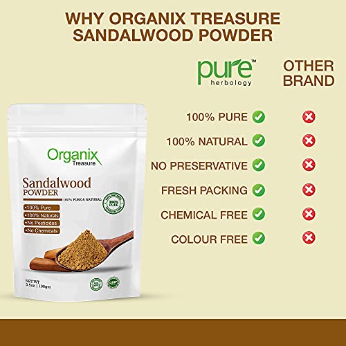 Do not fall for fancy packaging and fancy offers. If you are looking for genuine sandalwood powder, try our brand. Organix Treasure Sandalwood powder enhances skin complexion and tone. It helps to remove pigmentation marks, pimples and acnes. It helps in removing wrinkles leaving skin rejuvenated. It is known to reduce sun burn and inflammation. It makes skin smooth and free of acne, scars and blemishes over time. It can be mixed with other natural ingredients like rose water etc for extra benefits.