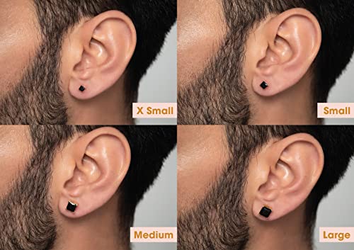 ORIONZ Stud Earrings for Men & Boys (1 Piece) – 925 Sterling Silver CZ Diamond Ear Studs – Black Princess Solitaire – 18k Gold Plated Jewellery – Birthday Anniversary Gift – Men Fashion Accessories