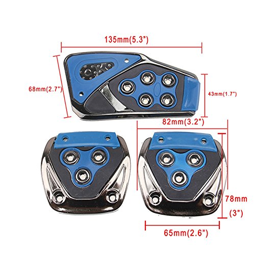 Creative and Fashionable Design Fit for most types of MT cars Easy installation, and to reduce the fatigue during driving Fit Model: Manual Transmission (MT) Material: Metal Accelerator Pad Cover: Approx. 14.7cm*7.6cm/5.8″x3.0″ Brake/Clutch Pedal Cover: Approx. 8.8cm*6.5cm/3.5″x2.6″