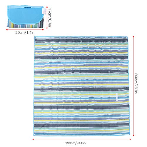 Unfolding Size: 200×190 cm/ 78.7x 74.8 inFolding Size: 29x17x5 cm/ 11.4×6.7×1.9 inThickness: Approx. 1 mm/ 0.03 inSports and Outdoor Items: Camping, Picnic and Outing