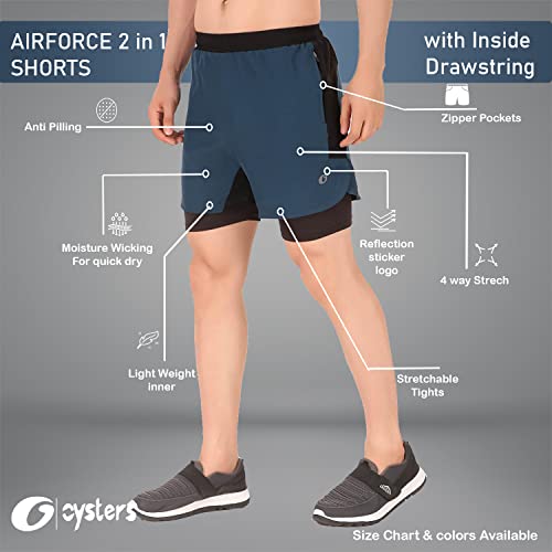 Oysters Men’s 2 In 1 Running Quick Dry Shorts Gym Athletic Workout Shorts For Men With Phone Pockets
