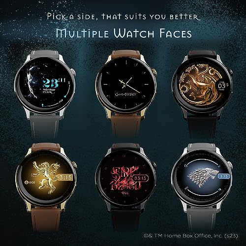 Pebble Game of Thrones Limited Edition Luxury Smartwatch – 1.43” (3.63 cm) Amoled Always-On Display, Feather Touch, Bluetooth Calling, Responsive Watch Faces, 24/7 Health Suite, AI Voice Assistance