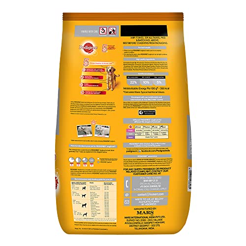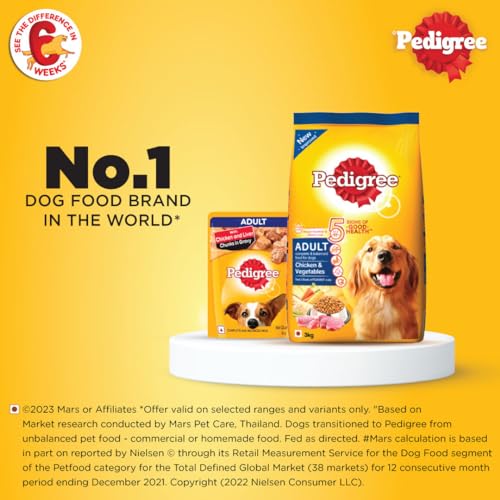 Pedigree, made with high quality ingredients, provides the dog with Min Protein 22%, Min Fat 10% & Max Fiber 5%.