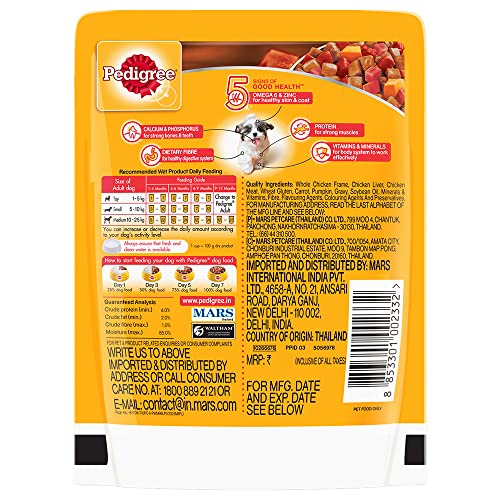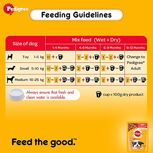 Pedigree Puppy Wet Dog Food, Chicken And Liver Chunks Flavour in Gravy with Vegetables, Pack of 30 Pouches ( 30 X 70 g ),Pack of 1