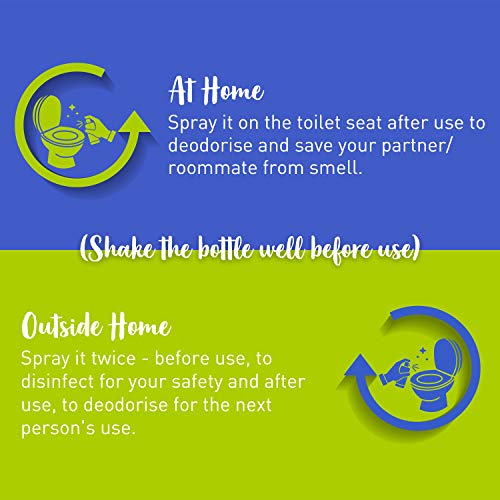 Spray it twice – before use, to disinfect for your safety and after use, to deodorise for the next person’s use.