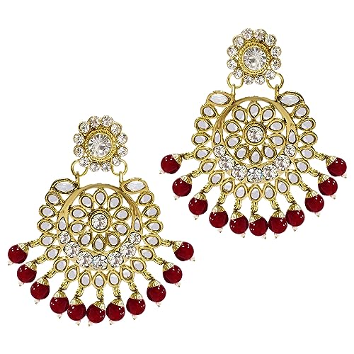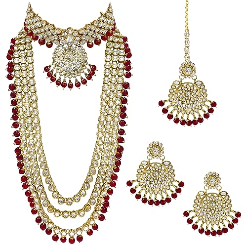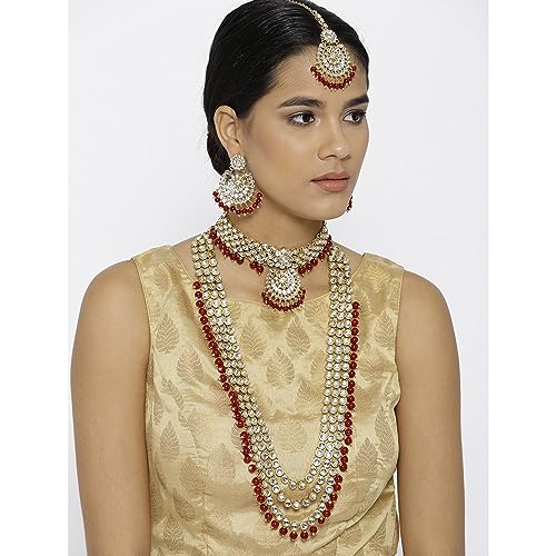 Peora 18K Gold Plated Kundan Faux Bead Bridal Necklace Jewellery Set for Women Girls