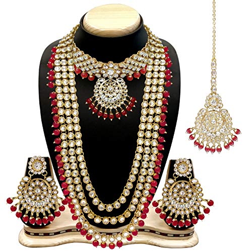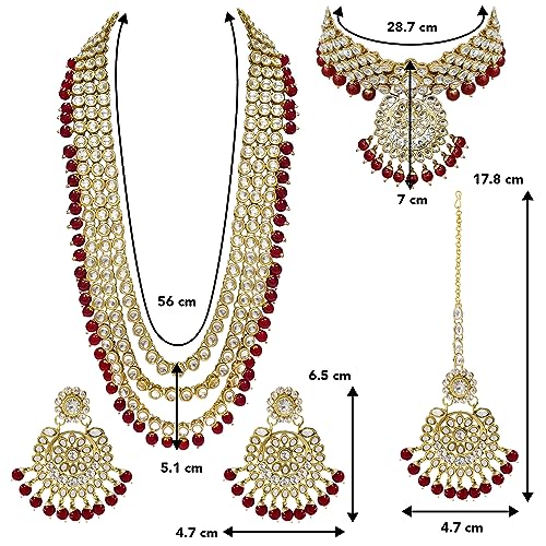 PACKAGE CONTAINS: 1 Choker, 1 Long Necklace, 1 Pair of Earrings, 1 Maangtikka