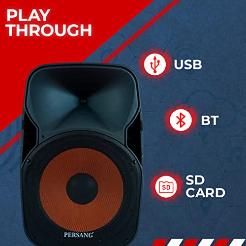 Persang Lucas 15AB Public Address Speaker with 150 Watts RMS, PA Speaker with 1 Wireless Mic, Remote Control | 38.01 CM Woofers, Fm Radio, Bluetooth, USB Sd Card Slot Connectivity – Black Color