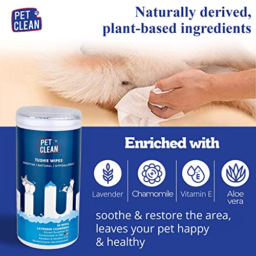 Pet Clean Lavender Chamomile Tushie Wipes – Gentle Care for Dogs, & Pets Cats – 50 Count (Pack of 1)