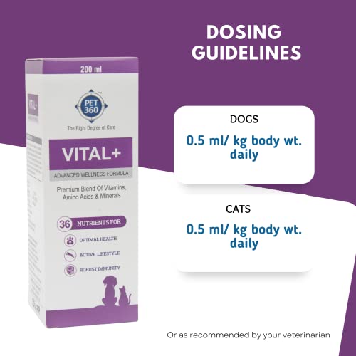 PET360 Vital+, Premium Blend of Multivitamins, Amino Acids & Minerals, Advanced Wellness Formula with Antioxidants & Immunity Booster for Dogs & Cats 200 ml