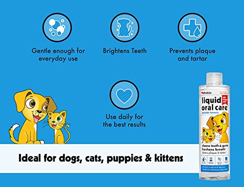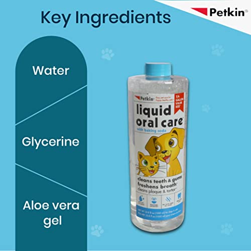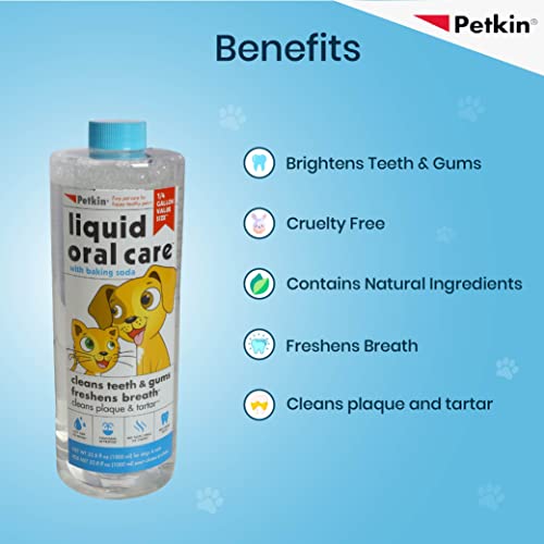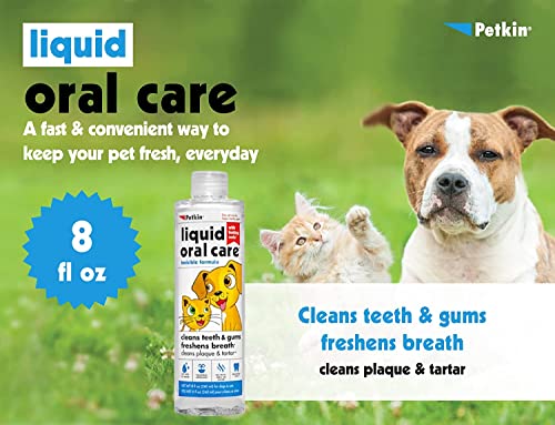 Petkin Liquid Oral Care for dogs and cats is easy to use removes plaque and tarter cleans teeth and freshens breath Keep Your Pet Mouth Clean and Fresh -1000ml. For complete dental care use – tooth wipes, a plaque dental kit, and plaque spray.