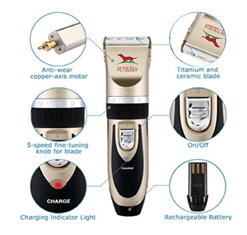 Petology presents Rechargeable Professional Pet Hair Trimmer to give your furry buddy a fresh and clean look and helps keep them always looking good and adorable. Cordless dog clipper helps groom your pet without the hassle of wires, safe for you and your pets.