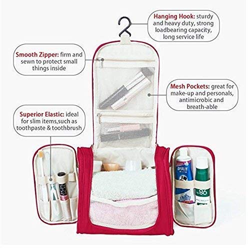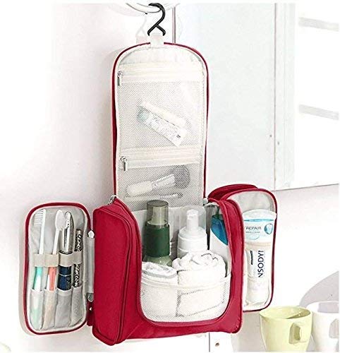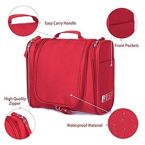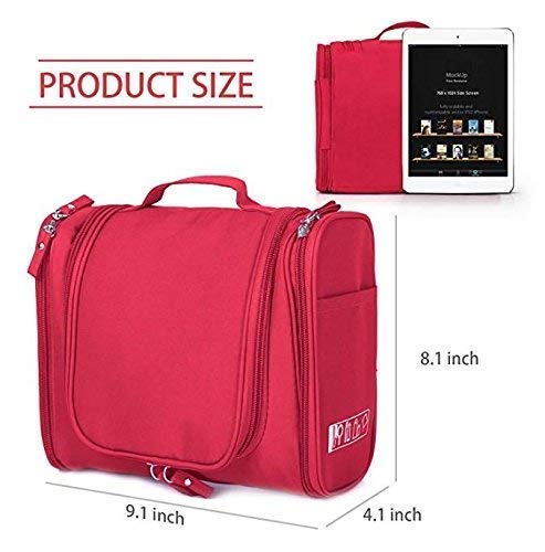 PETRICE Multifunctional Toiletry bag Large Makeup pouch Waterproof Shower Wash Bag Cosmetic Organizer Case Travel Kit Pack with Hook (Red)
