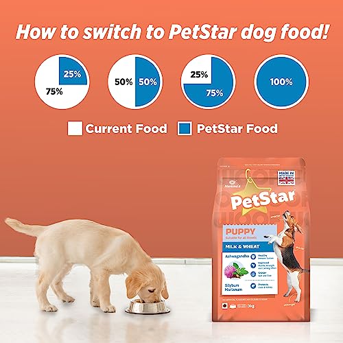 PetStar is Complete and Balanced prepared packaged dry food for your dog for your growing puppy with added advantage of Ayurveda care. No added sugar, No added artificial colour and No preservative added. Rapeseed oil is added to keep skin and coat healthy. Linseed oil used for heart health. Salmon oil added for brain growth and intelligent trainable puppies. All natural ingredient sourced from best of raw material sources across Europe. All recipes are fortified with DHA, Omega 3 & 6. 79% Bioavailability of protein used as ingredient. Ashwagandha added for healthy immune system, improved muscle, strength and calming effect and shinier skin coat. Silybum Marianum for protecting liver and renal health. Each of kibble goes through all microbiological, and chemical tests as per global standard. Mankinds Petstar pet food is tested across geography and breeds in India and one of the most palatable and liked food by your dogs across age group.