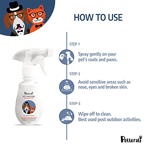 Petterati Pet Sanitizer – Lavendar (250 ml) | BKC & Alcohol-Free Pet Paw Cleaner | Kills 99.9% Germs | Safe for Both Dogs & Cats