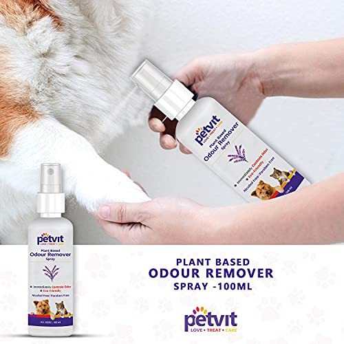 Petvit Odor Remover Spray with Lavender | Eliminate Bad Breath | Detangling Hair | Paraben Free & pH-Balance -for All Breed Dog & Cat – 100ml