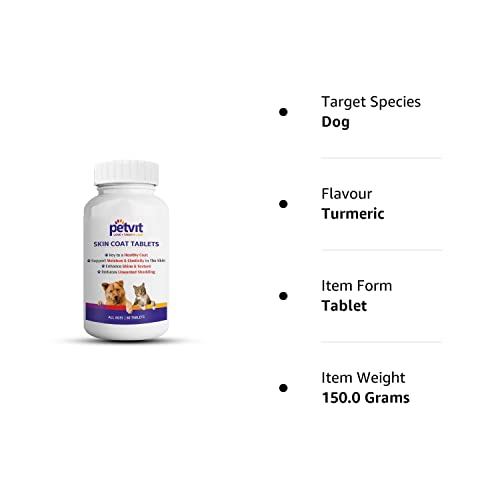 Effective Dog Skin & Coat Supplement: Includes 60 Count of Petvit Skin & Coat Supplement Tablets that are ideal for dogs of any age will support your dog’s health.