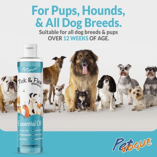PetVogue Flea and Tick Dog Shampoo – Dog Shampoo for Pomeranian, shih tzu Puppy, Rottweiler Adult, German Shepherd, Labrador and Golden Retriever, Dog Accessories, Dogs & Cats Shampoo, Pet Shampoo for Dogs, Shampoo for Dogs, Dog Anti Dandruff Shampoo – 200ml