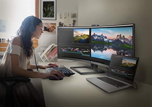 32:9 SuperWide 49″ screen, with 5120 x 1440 resolution, is designed to replace multiscreen setups for massive wide view. It’s like having two 27″ 16:9 Quad HD displays side-by-side. SuperWide monitors offer screen area of dual monitors without the complicated setup.