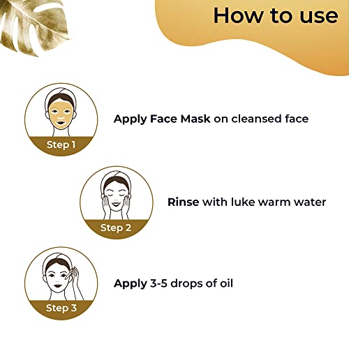 ✅How To Use: 24K Gold Facial Mask: Take a generous quantity and apply evenly on the face and neck. Leave on for 20 minutes. Rinse with lukewarm water. 24K Gold Beauty Oil: After cleansing and toning, apply 3-5 drops to the face and neck for glow.