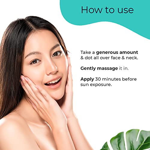 ✅How to use: 1. Take a generous amount and dot all over face & neck. 2. Gently massage it in. 3. Apply 30 minutes before sun exposure. For best results, reapply every 2 hours especially if you are outdoors.