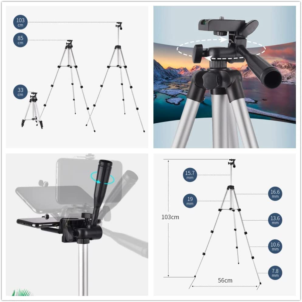 Universal Phone Holder: This is a excellent quality, phone bracket is automatic elastic, stretch can clip 5.4-8.8 cm width’s phone. Phone bracket is adjustable and lightweight, easy to use and carry with. With standard tripod hole, you can install in any 1/4″ tripod stand.