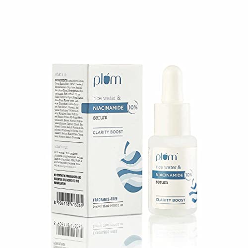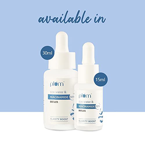 Plum 10% Niacinamide Serum with Rice Water | Serum for Face | Vitamin B3 with Japanese Fermented Rice Water | For Clear, Blemish-Free, Bright Skin | Suits All Skin Types | Fragrance-Free | 15 ml