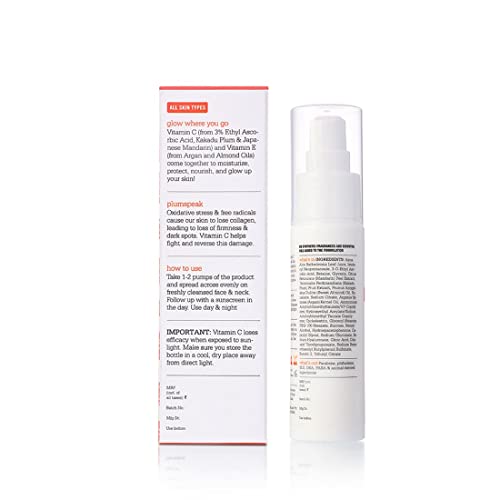Plum Vitamin C Fragrance-Free Vegan Moisturizer with Mandarin For Glowing Skin, Dull Skin, Improves Uneven Skin Tone & Elasticity