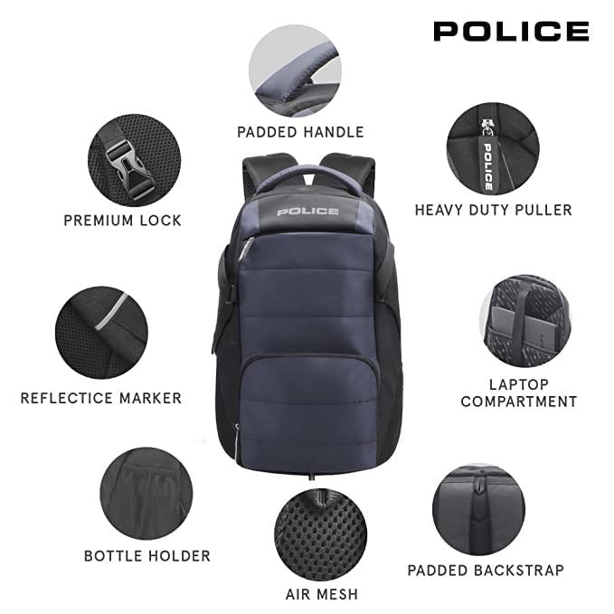 Be the first to review “POLICE Polyester 35 Ltr Laptop Big Low Spec Laptop Backpack – Black/Navy”