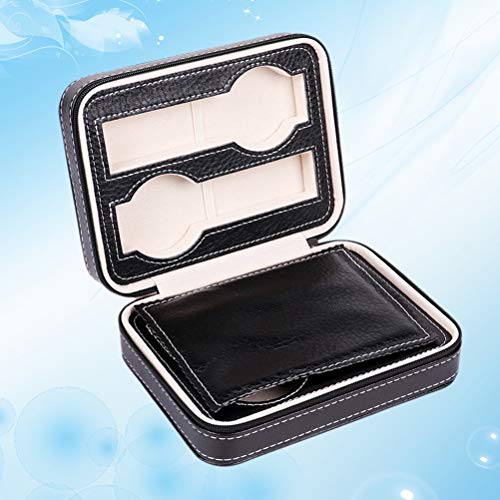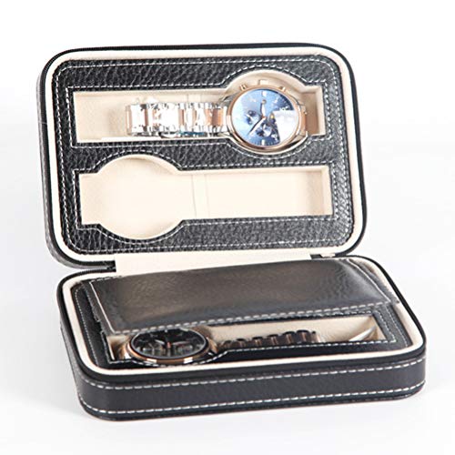 Portable Zippered Watch Travel Case Holder 4 Compartments Watches Interior Storage Organizer Watch Collection Travel Bag (Black 4 Watch Box Compartments) Watch Box Watch Storage Case Watch