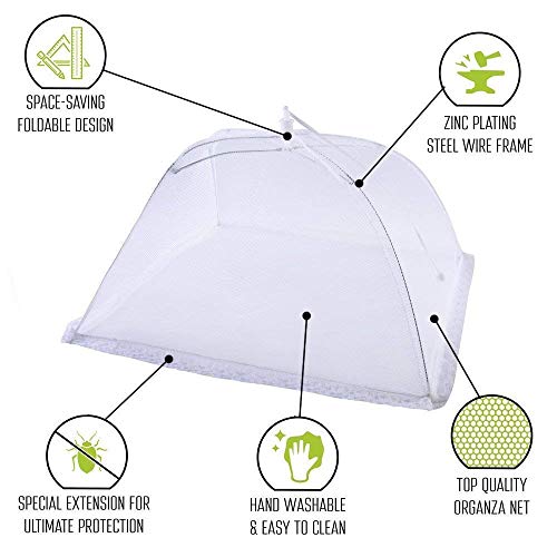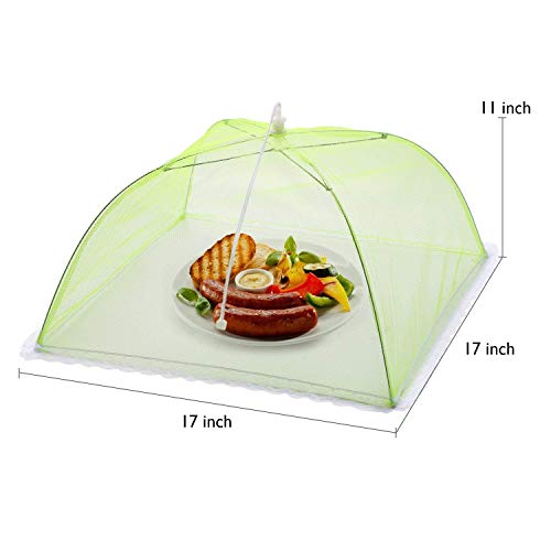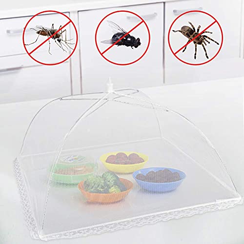 Lauon Large Pop Up Mesh Food Covers, protect food from insects while entertaining outside. Fine nylon mesh screen and Fancy Lace around the bottom ensure your food and beverages are safe from bugs without affecting the taste.