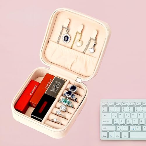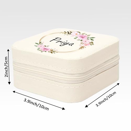 Precious Arts Customized Mini Jewellery Organiser Box | Double layered Compartment Jewellery Box | Organizer Box for Women Travel Ring, Pendant, Earring, Necklace Storage Case 4×4 INCH (Off-White)