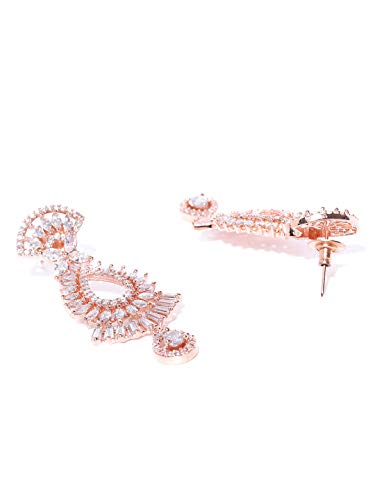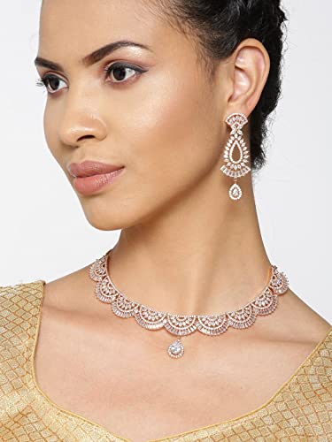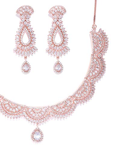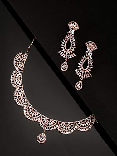 Attractive Design & Style: This rose gold jewellery set for women has a stunning floral design adorned with finely-cut American Diamonds. It has an intricate pattern exquisitely crafted by skilled craftsmen. This set has excellent finishing and detailing to make you look and feel beautiful.