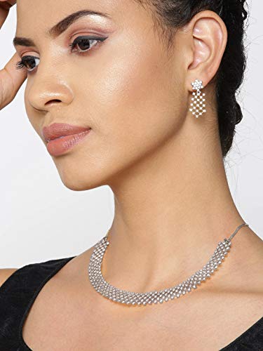 Attractive Design & Style: This silver-plated jewellery set for women has a stunning design adorned with finely-cut American Diamonds. It has an intricate pattern exquisitely crafted by skilled craftsmen. This set has excellent finishing and detailing to make you look and feel beautiful.