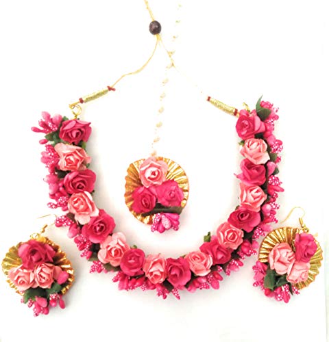 Light weight flower jewellery for women & girls .Vibrant Color ,Free Size ,Weight less ,soft & easy to Handle .It is made of artificial flower & pearl mala .Flower jewellery set for mehandi haldi , baby shower ceremony .Light in weight & gives you a rich look . perfect gifting option to please your near ones .